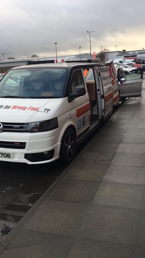 Don’t try and start the car as you risk engine damage. Call us on 07555 509594 and we will get the fuel removed before the car gets damaged.